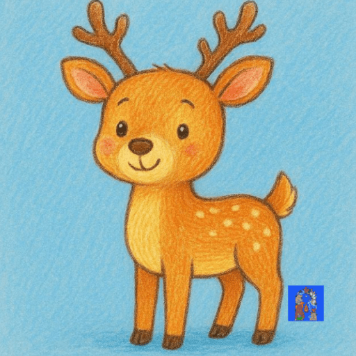 During his walk in the forest, the child encountered a majestic stag. Intrigued by the beauty of its antlers, he approached to greet it and have a conversation: